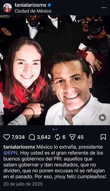 Por ejemplo, en 2023 acusó al exalcalde de Cuajimalpa, Adrián Ruvalcaba, de orquestar una agresión contra “jóvenes militantes” del PRI. En ese momento, Tania Larios era una incipiente secretaria general en el PRI, que rápidamente escalaba posiciones dentro del fracturado partido.