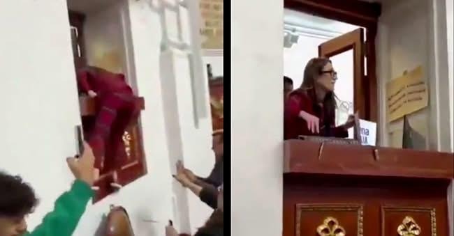 Como el ocurrido en diciembre de 2025 a propósito de la desaparición de InfoCDMX, donde la diputada trepó un balcón para dañar un equipo de sonido y así impedir el debate público de la medida.