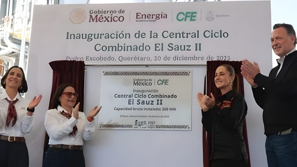 Este sábado 20 de diciembre de 2025, la presidenta Claudia Sheinbaum inauguró la central de ciclo combinado El Sauz II en Pedro Escobedo, Querétaro. En el evento, estuvo acompañada por el gobernador Mauricio Kuri y la secretaria de Energía, Luz Elena González Escobar.