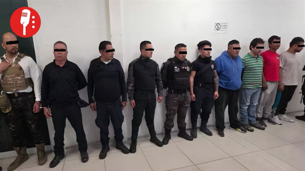 La lista de detenidos incluye al director de Seguridad y a cinco policías, además de varios civiles involucrados en el robo. Se aseguraron también dos patrullas, una camioneta Nissan, cinco armas de fuego, cartuchos y teléfonos celulares.