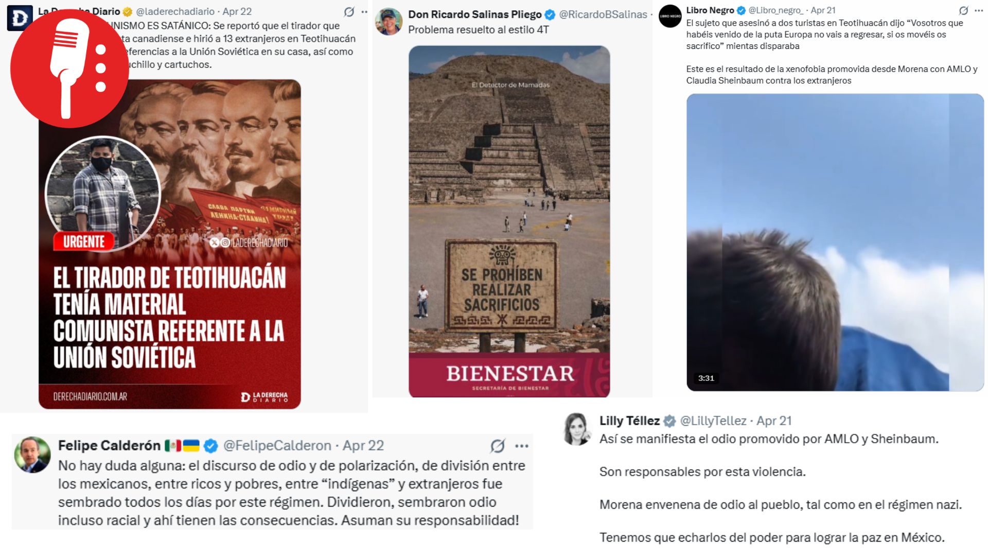 El ataque armado ocurrido en la zona arqueológica de Teotihuacán dejó una inmediata ola de desinformación y discursos de odio promovidos desde sectores de la derecha. En cuestión de horas, figuras públicas de la oposición como Salinas Pliego, Felipe Calderón y Lilly Tellez difundieron una narrativa que buscó no sólo criticar a la izquierda, sino responsabilizar políticamente al gobierno actual sin evidencia alguna, abonando a una pedagogía del odio en un caso que merece el debido respeto y tratamiento.