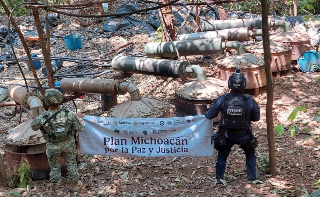 Elementos del Ejército Mexicano y de la Secretaría de Seguridad Pública de Michoacán (SSP) desmantelaron un laboratorio clandestino para la elaboración de drogas sintéticas en la localidad de La Placita, municipio de Arteaga, como parte de los operativos de vigilancia y combate al crimen organizado en la región.