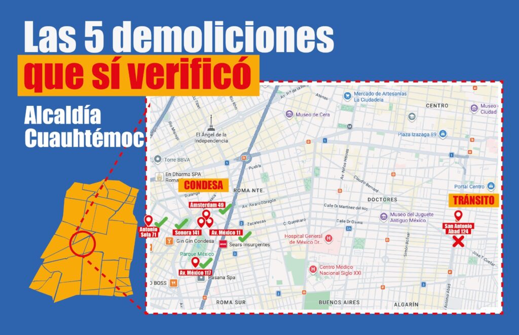 Mientras tanto, otro elemento vino a complicar aún más la situación, pues el secretario Inti Muñoz dio a conocer que, durante el mismo periodo en el que no se supervisó la obra de San Antonio Abad, la alcaldía sí realizó al menos cinco verificaciones en distintos inmuebles de la colonia Condesa.