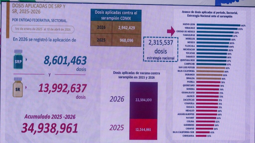 Brugada afirmó que, desde agosto de 2025 hasta hoy, se tiene un registro de más de 3 millones de personas vacunadas contra el sarampión en la Ciudad de México. “Se tomaron decisiones inmediatas que han ayudado a combatir este brote de sarampión”, indicó.