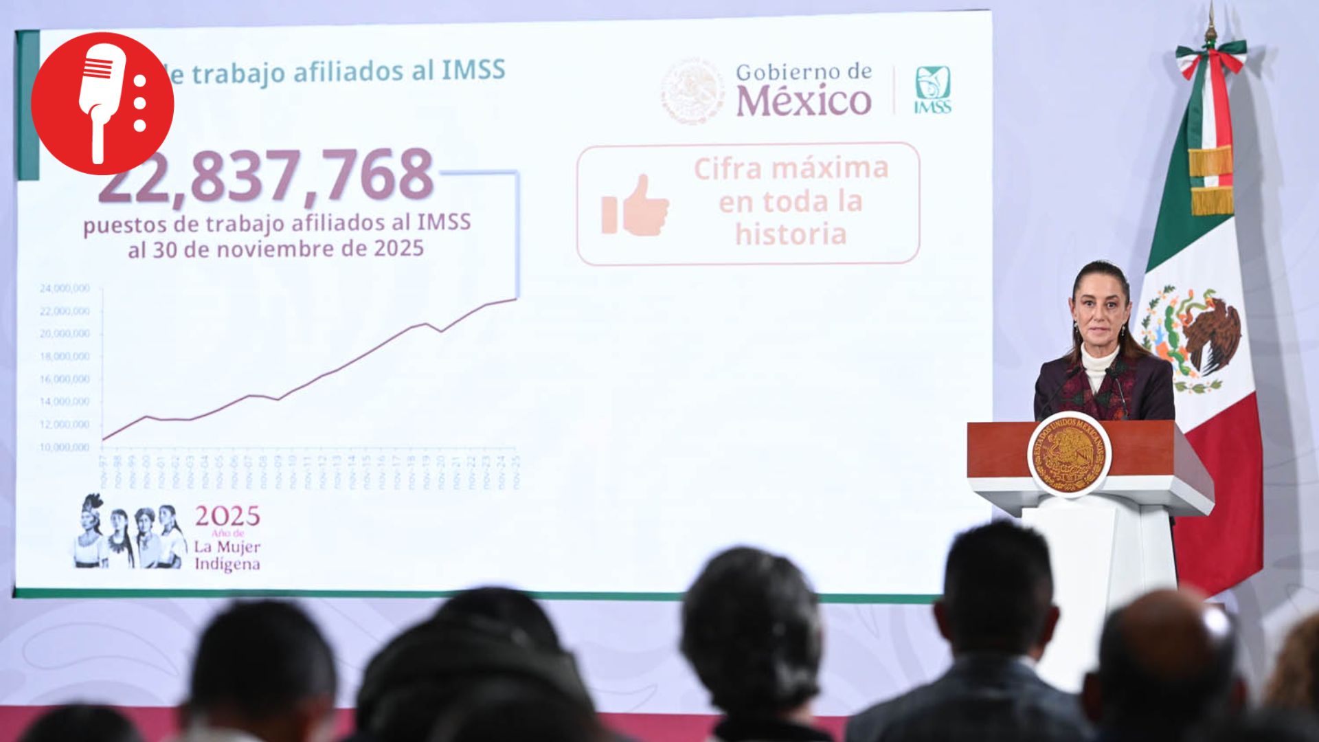 El director del IMSS, Zoé Robledo, detalló que 86.7% de los empleos son permanentes, sumando 19 millones 800 mil 325 puestos, la cifra más alta de la historia. Además, 9.2 millones de empleos son ocupados por mujeres, quienes representan el 40.4% del total, con 98 mil nuevas plazas generadas únicamente para este sector en 2025.