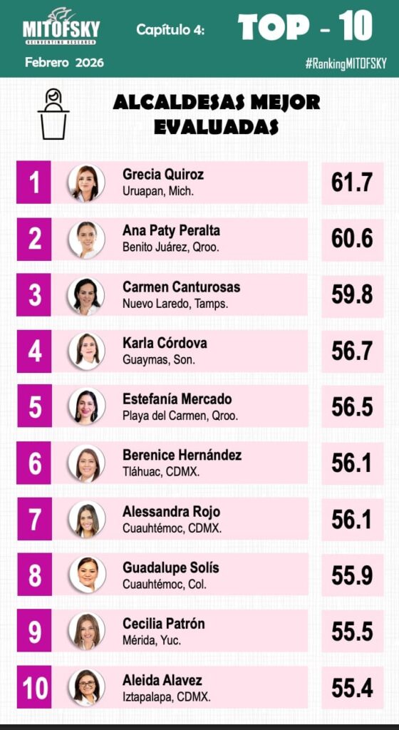 Estefanía Mercado Asencio, la alcaldesa de Playa del Carmen, logró un notable reconocimiento en el ámbito municipal. Según un estudio reciente de la consultora Mitofsky, ella se encuentra en la quinta posición del ranking de liderazgo municipal femenino en México. Este informe, que evaluó a 150 presidentes municipales en febrero de 2026, destaca su aprobación del 56.5%, una cifra considerablemente alta.