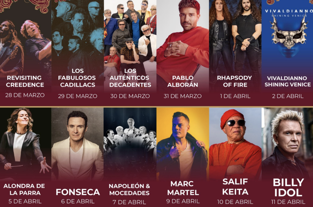 Entre los actos estelares del festival figuran nombres que no son precisamente baratos. Billy Idol, el veterano del rock británico, tiene un costo de contratación que oscila entre los 300 mil y 499 mil dólares, de acuerdo con la agencia CelebrityTalent. Los Fabulosos Cadillacs, la reconocida banda argentina, cotizan entre 100 mil y 200 mil dólares de acuerdo al sitio Cuanto. Y para completar el cuadro, Revisiting Creedence, de acuerdo al portal Booking Entertainment lista con un costo anunciado menor a 100 mil dólares, aunque estimaciones en línea lo ubican alrededor de los 39 mil.