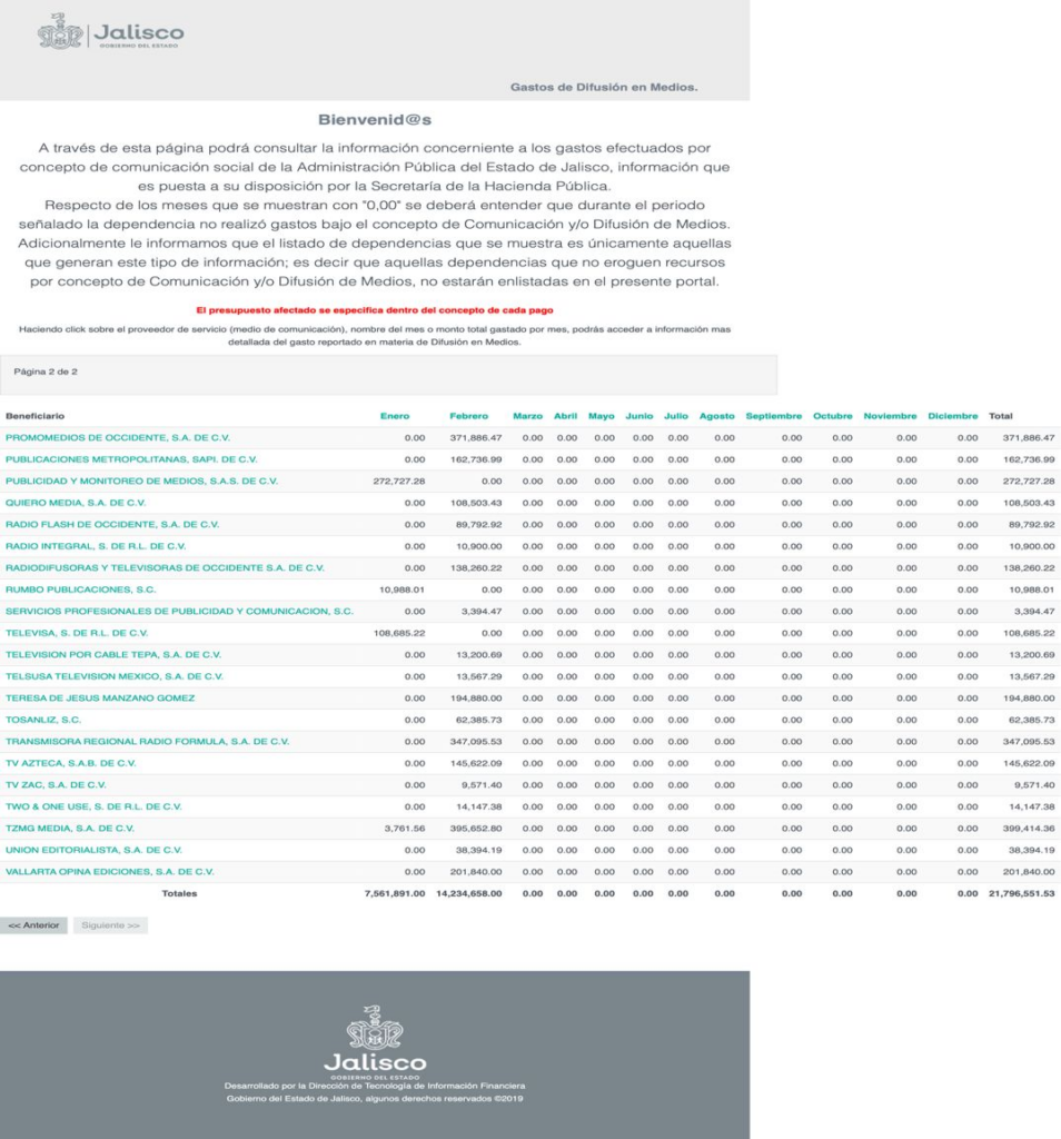 Entre enero y febrero de 2026, la administración de Pablo Lemus desembolsó 254 mil pesos para pagar a TV Azteca y Televisa la difusión de su primer informe. A esto se sumó el pago millonario por la difusión de una campaña llamada “Cuidado con el Aire”, además de otros 8 millones en servicios de análisis de mercado.