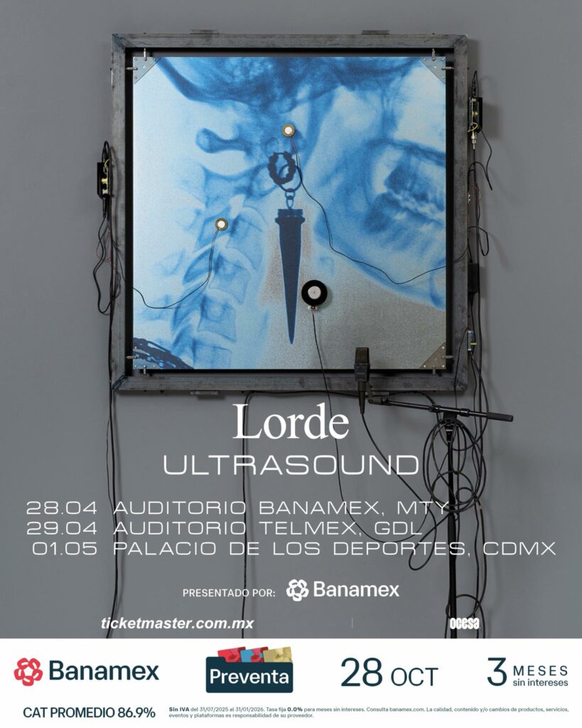 La cantante neozelandesa Lorde regresará a México en 2026 con su nueva gira mundial “Ultrasound”, tras cuatro años de ausencia. Presentará temas de su más reciente disco Virgin junto a sus grandes éxitos en tres conciertos en Monterrey, Guadalajara y Ciudad de México. La preventa Banamex iniciará el 28 de octubre, y la venta general, el 29 de octubre a través de Ticketmaster.