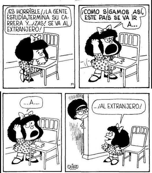 La historieta también destacó por construir un universo social complejo a través de personajes como Felipe, Manolito y Susanita, quienes representan distintas posturas ideológicas y aspiraciones sociales. Mediante situaciones cotidianas, Quino logró articular críticas profundas con un lenguaje sencillo, con viñetas y frases como “¿No sería hermoso el mundo si las bibliotecas fuesen más importantes que los bancos?”, o “Resulta que si uno no se apura a cambiar el mundo, después es el mundo el que lo cambia a uno”, vaya, simplemente, Mafalda.