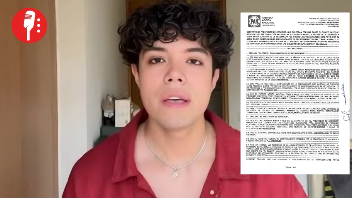 Edson Andrade, el joven que impulsó las marchas juveniles como voz independiente, firmó en febrero de 2025 un contrato con Acción Nacional por 2.1 millones de pesos. Cobra 175 mil pesos mensuales desde entonces.