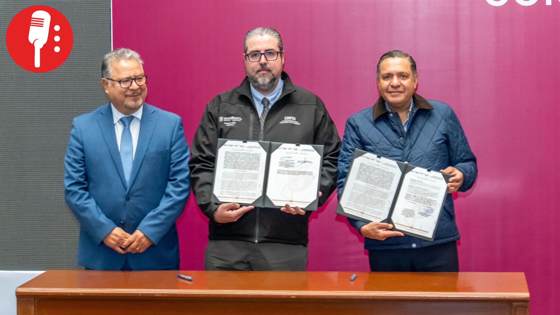 En un acto acompañado por Norberto Morales, Secretario del Trabajo del Estado de México, y Luis Miguel Carriedo, titular de la Coordinación Ejecutiva del Mecanismo para la Protección Integral de Periodistas y Personas Defensoras de los Derechos Humanos (CEMPIDH), firmaron un convenio de coordinación interinstitucional enfocado en la protección integral de periodistas y defensores de derechos humanos en el Estado de México.