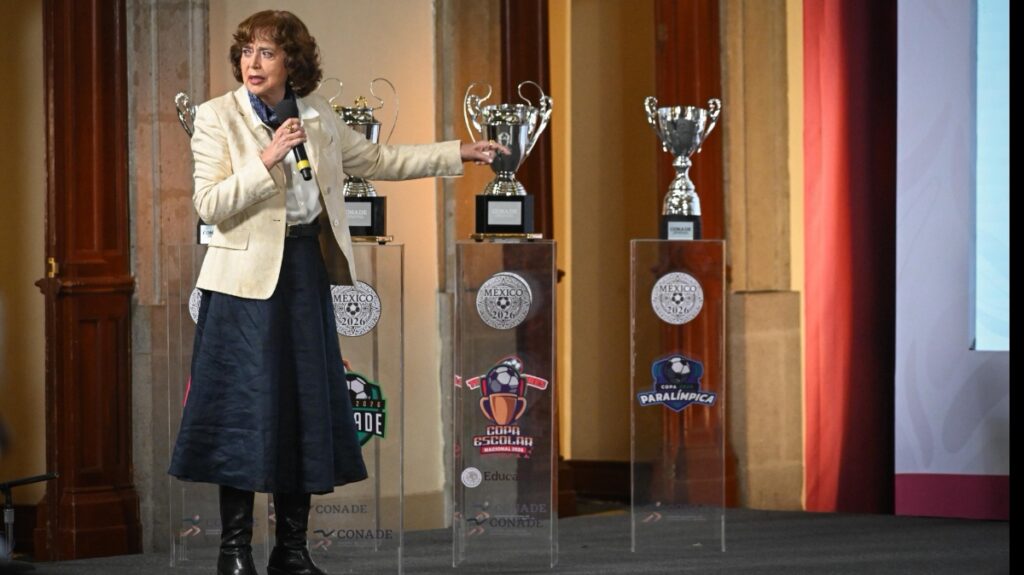 Gabriela Cuevas, coordinadora de los trabajos del Gobierno Federal para el Mundial 2026, reiteró que México será el único país en albergar por tercera ocasión una Copa Mundial de la FIFA. Destacó que, en esta ocasión, se pondrá a “México, a las mexicanas y mexicanos, en el centro de todo nuestro trabajo rumbo a la Copa Mundial 2026”. El objetivo es llevar el mundial “más allá de los estadios”, para que los más de 130 millones de mexicanos puedan disfrutarlo en las 32 entidades federativas. 74 Mundialitos y Copas- Solo la Copa Escolar invitará a participar a más de 22 millones de niñas, niños y adolescentes. El objetivo de los Mundialitos y Copas es “que todos los niños y niñas que quieran dedicarse al fútbol profesional cuenten con todas las oportunidades para lograrlo”. Primer Mundialito de Robótica: Este evento une deporte y conocimiento, gracias a un esfuerzo colectivo encabezado por la Secretaría de Ciencia, Tecnología e Innovación (Secihti).