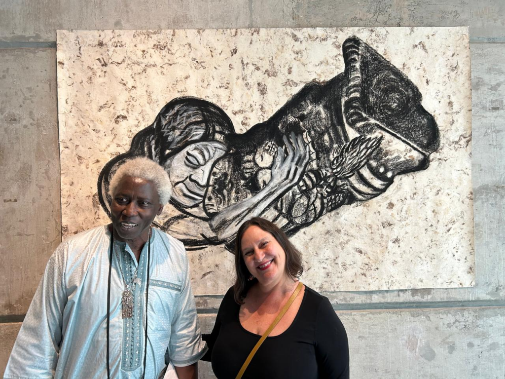 La muestra recibió la visita del crítico de arte y creador senegalés Ery Cámara, autor de The language that we share; Mirando al Xoloitzcuintle; África Hoy; Arte Animista; y Senegal nuestro país. Tradiciones culturales de las etnias. África. La figura de Nut es emblemática: protectora de la bóveda celeste. Me apropié de su imagen encorvada como símbolo protector; en Nut en sororidad se le ve protegiendo a una mujer, quien a su vez protege a otra, y así al infinito…