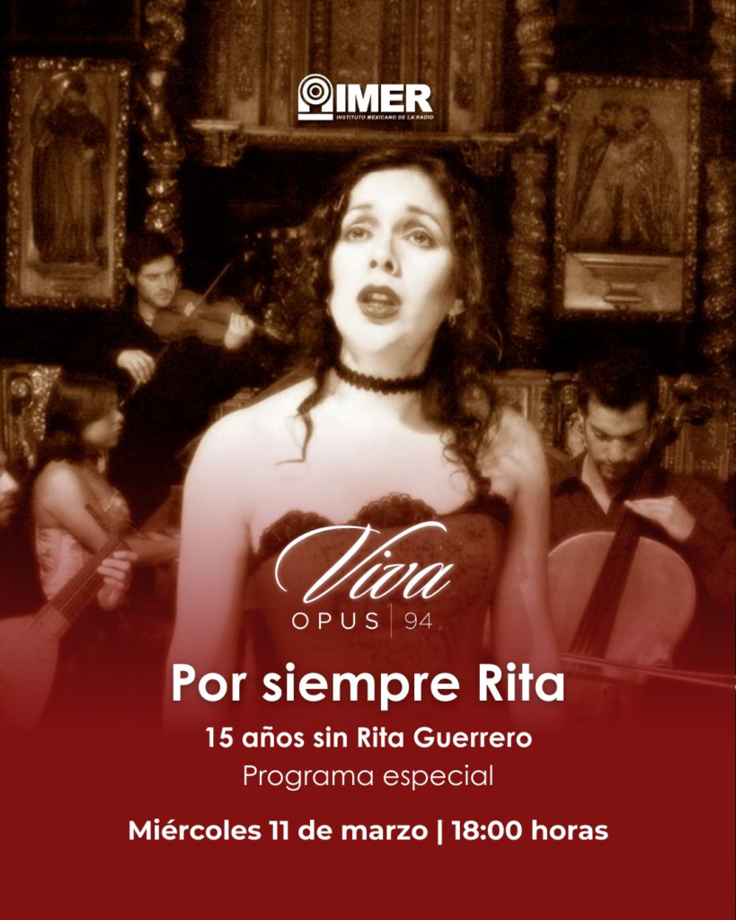 La emisora Opus 94.5 del Instituto Mexicano de la Radio-IMER, presenta un programa especial dedicado a recordar la trayectoria y el legado de Rita Guerrero, una de las voces más singulares de la música mexicana contemporánea. A 15 años de su partida, el recuerdo de su presencia escénica magnética y su sensibilidad profunda sigue vivo en el corazón de sus seguidores.